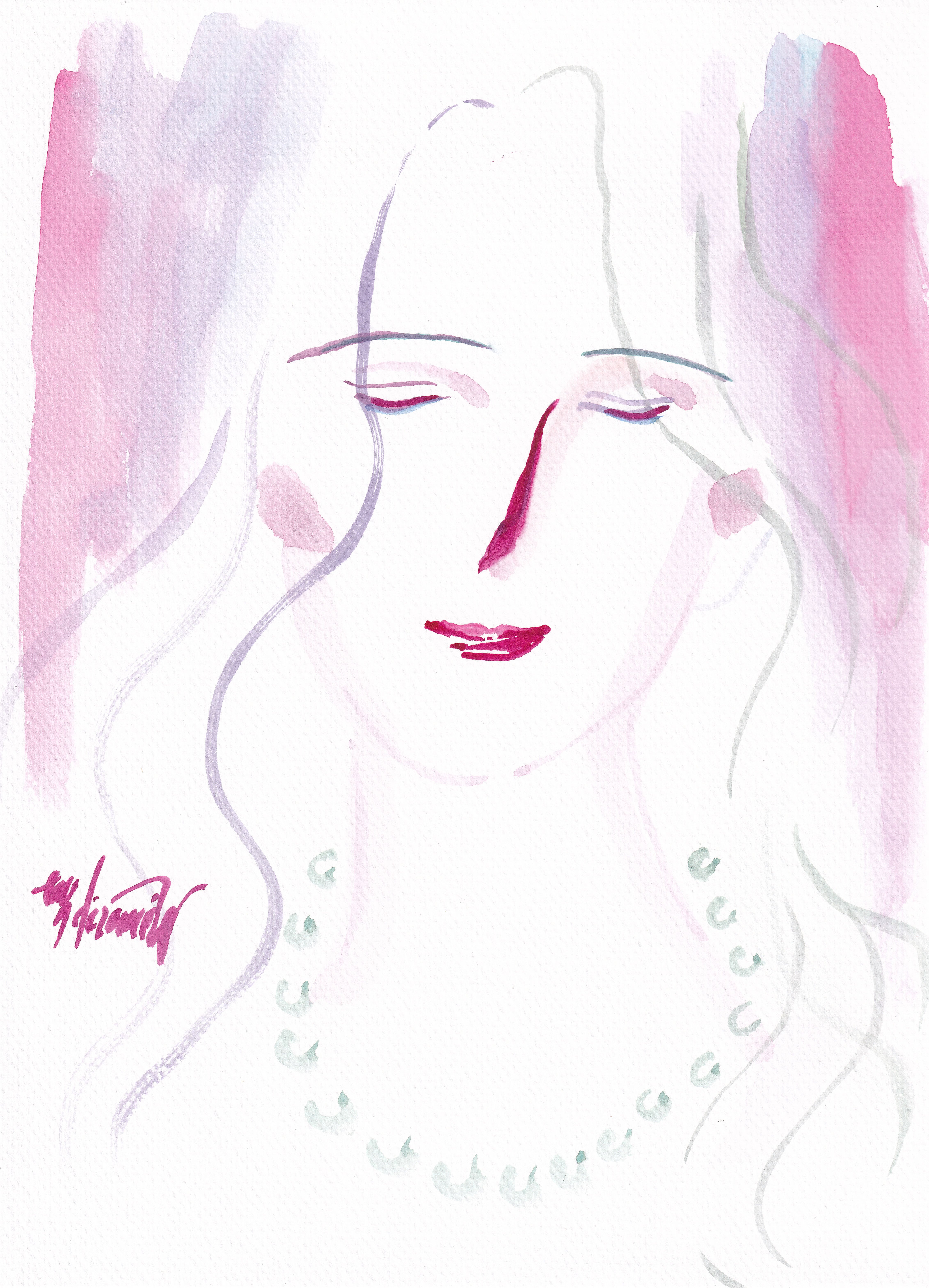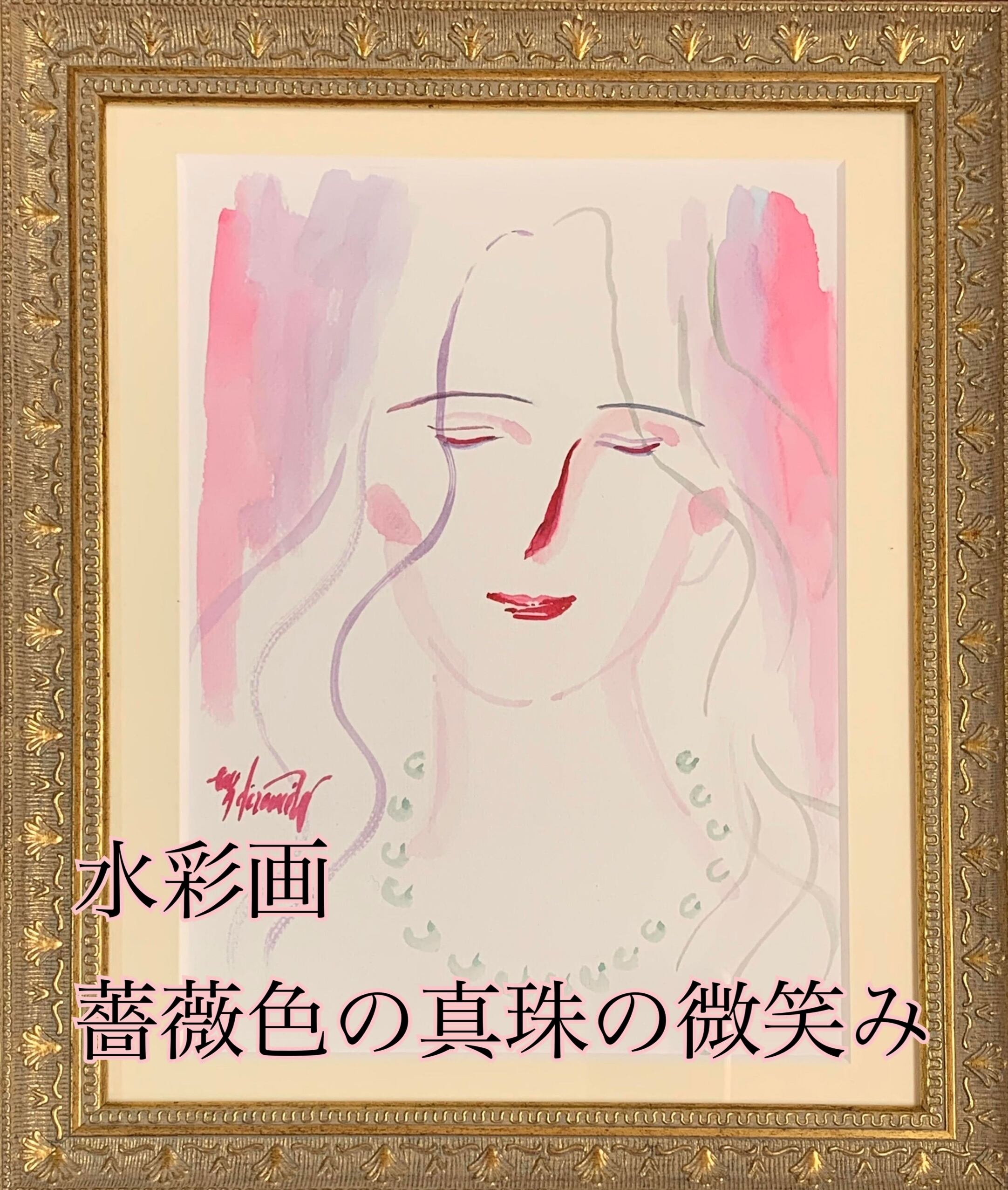 薔薇色の真珠の微笑み*額入り水彩画*原画