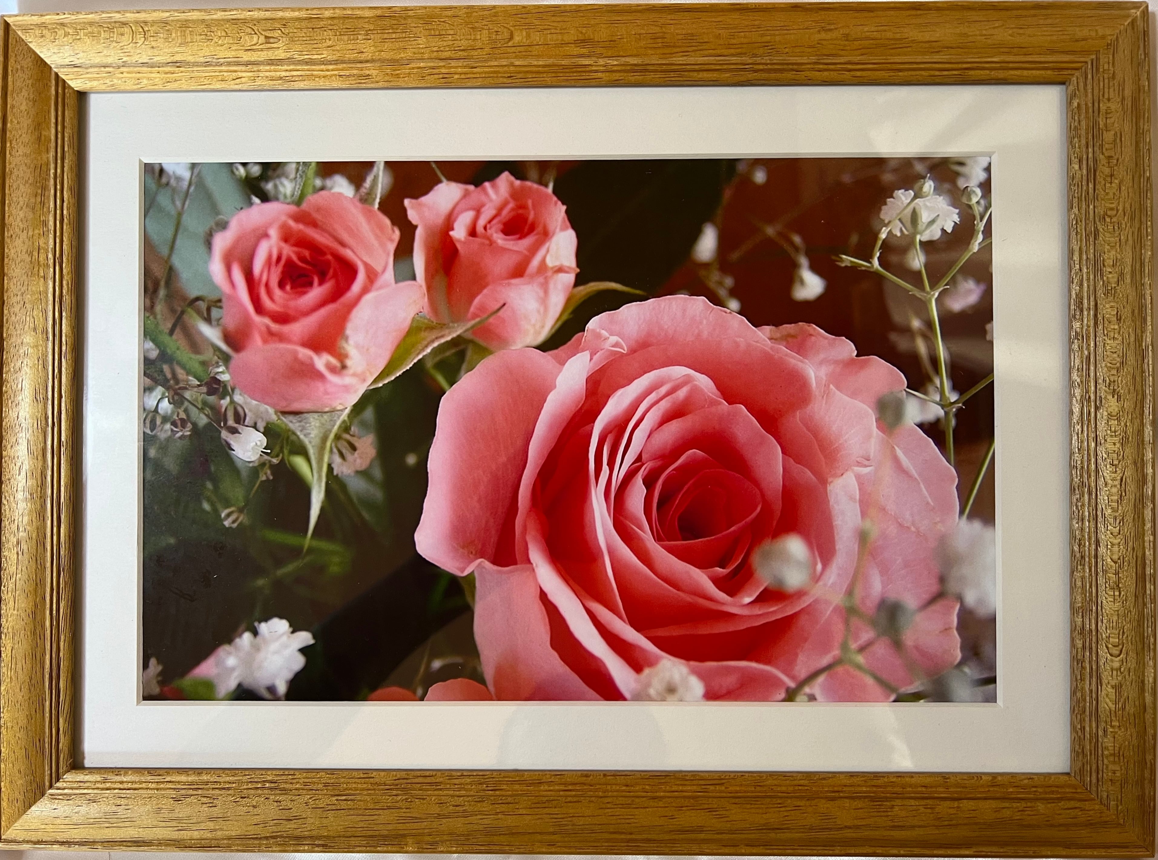 この作品は、濃いピンクの薔薇の美しさが華やかで、かつ、優しさに満ちているようで。このタイトルをつけました。